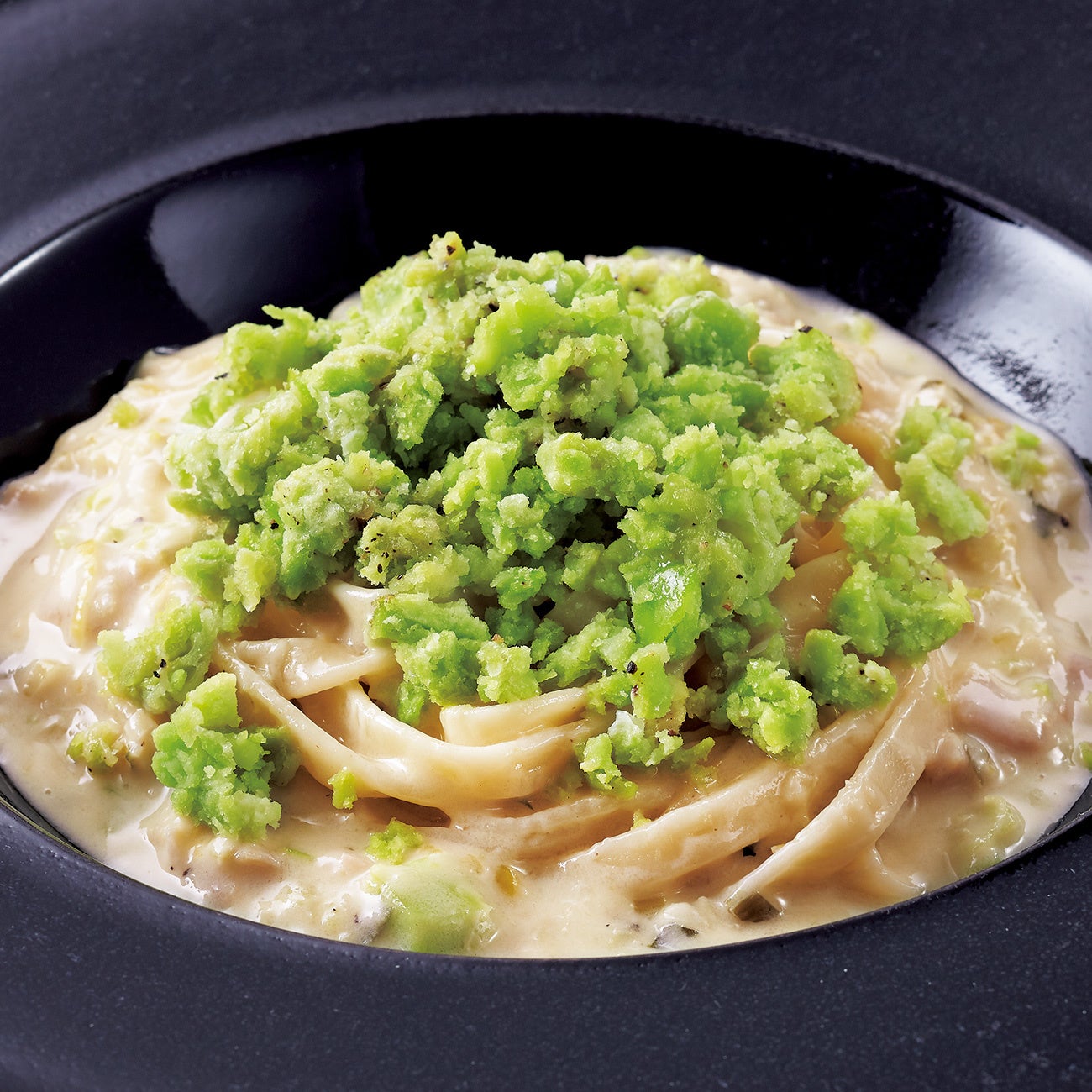 空豆とサワークリームソースのタリアテッレ
