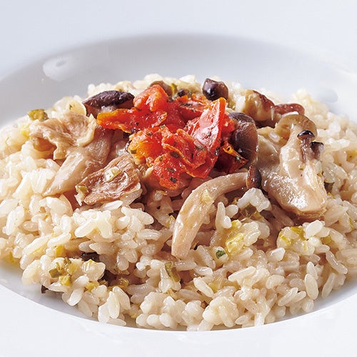 芳醇なポルチーニ茸をはじめ、にんにく、西洋葱などを合わせた香り高いリゾット。チキンベースに2種類のチーズを加えて仕上げました。ミルキーなコク深さも魅力です。