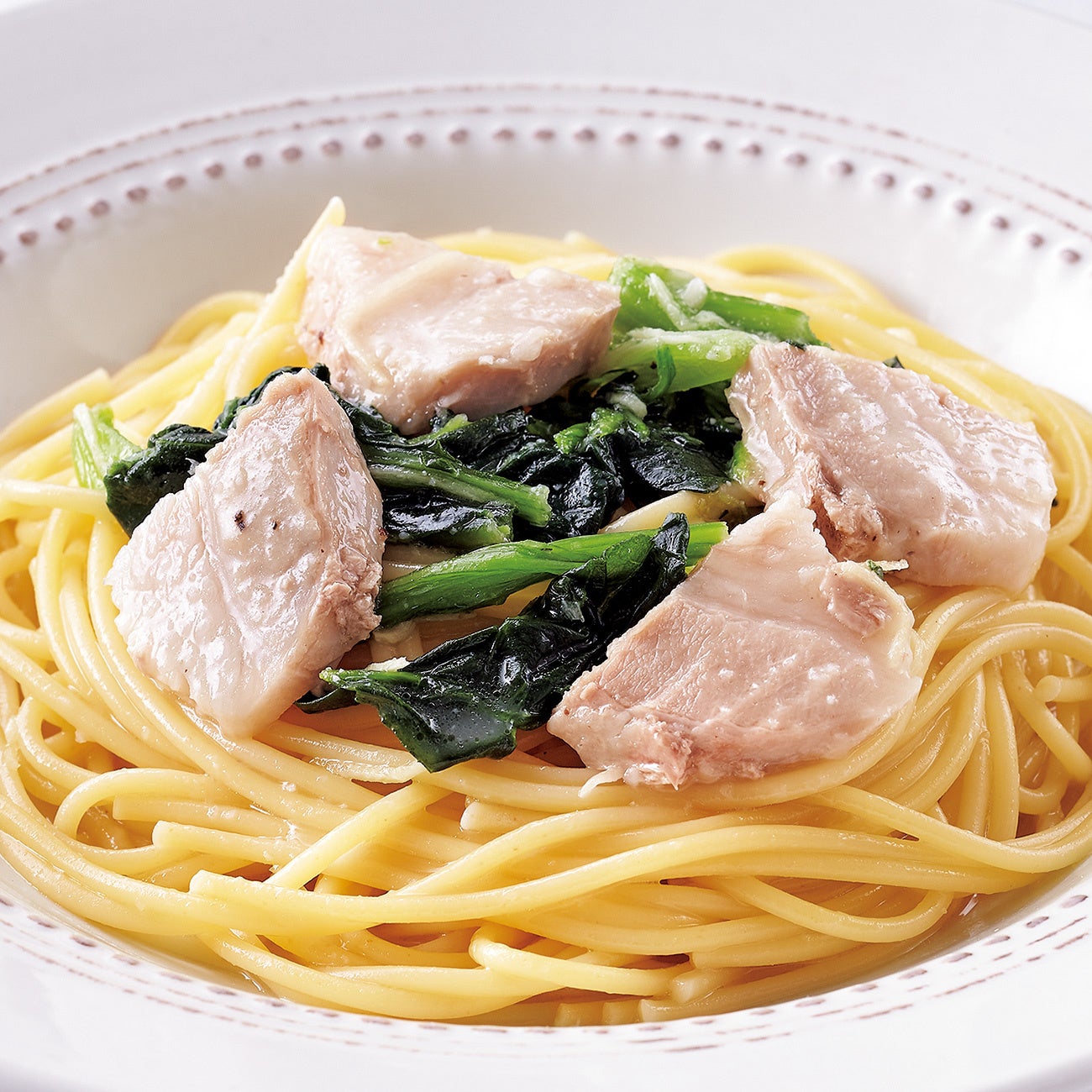 爽やかな風味のバジルペーストに、やさしい酸味のドライトマト、クリーミーなモッツァレラチーズを合わせました。ベーコンの小気味よい塩気とコクも加わって、もっちりしたリングイネの美味しさを高めています。