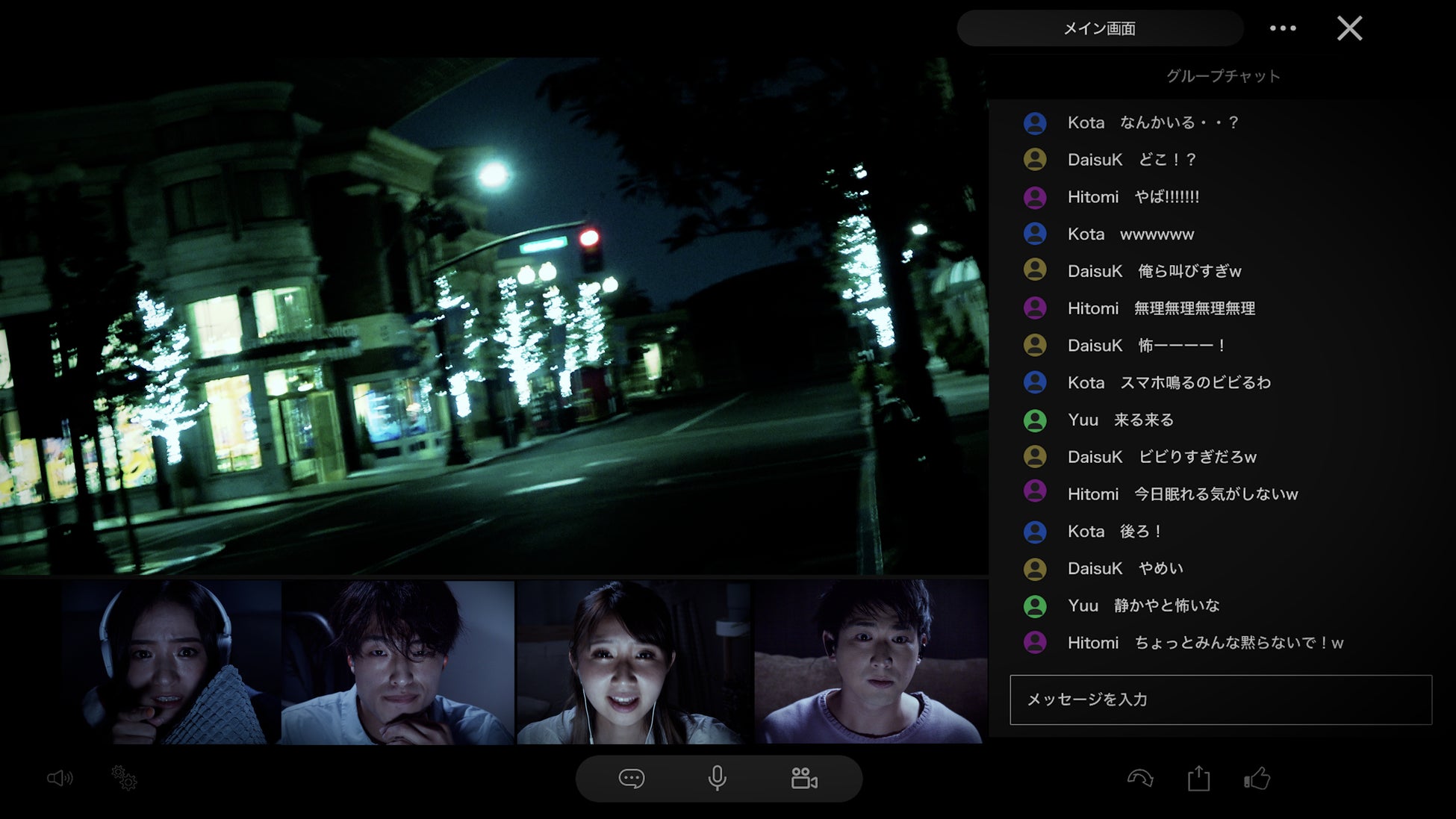 オンラインの垣根を越えて迫り来る恐怖を仲間で乗り越えることで、絆が深まる様子を描いた告知動画