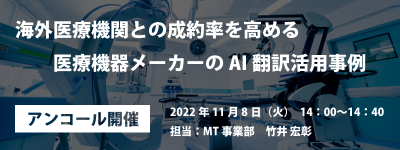 そこで本ウェビナーでは、国内とは事情が異なる【海外医療機関との成約率を高める医療機器メーカーのAI翻訳活用事例】と題したウェビナーを開催いたします。