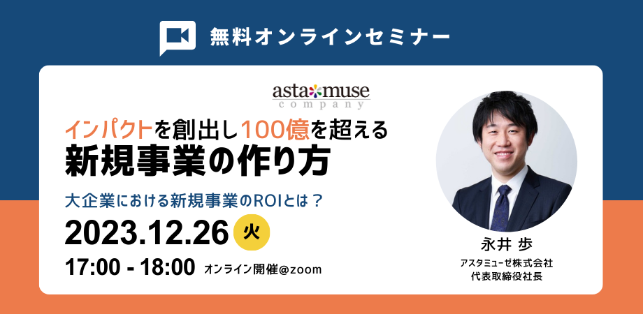 新規事業創出にフォーカスした完全新作ウェビナー「インパクトを創出し100億を超える新規事業の作り方 ~大企業における新規事業のROIとは?~」を開催