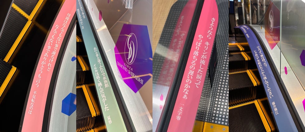 6Fから7Fへと続くエスカレーターには、2000首以上の応募作品の中から厳選した短歌をラッピング。「ふたり」というテーマから連想される短歌の世界観をぜひお楽しみください。