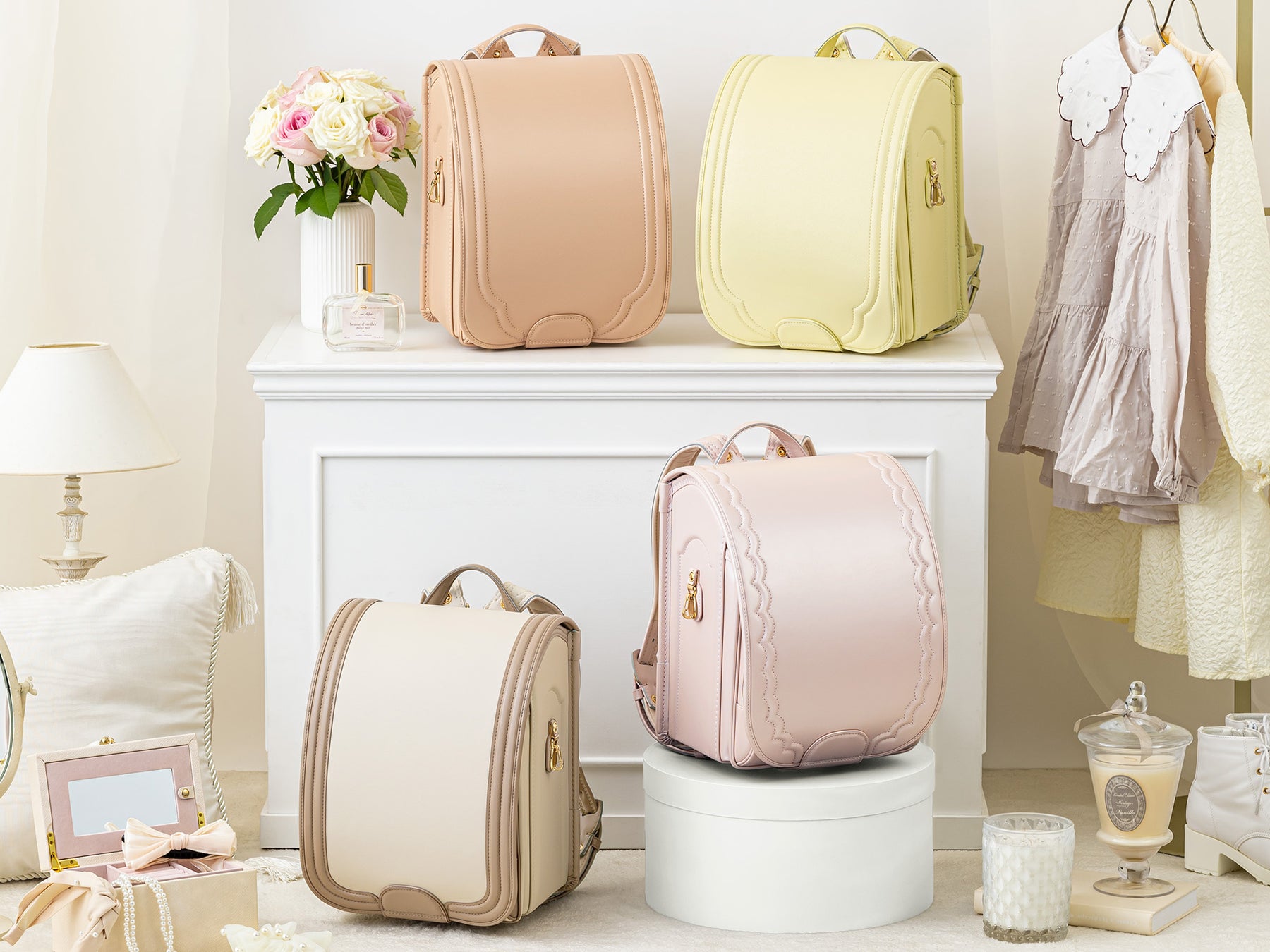 可愛いものが大好きなgriroseのお客さまには、パープル、ピンク、水色といった淡い色味が多く選ばれています。登場以来大人気の「シュガークリーム」を筆頭に、白・ベージュ系のランドセルも上位に入りました。