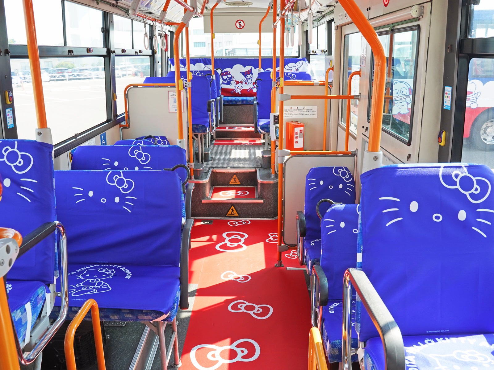 テープカットの後には、“ハーモニーライナー”の内覧会が行われました。バスの外装・内装にはサンリオキャラクターやキャラクター達のモチーフがふんだんにあしらわれており、座席に座って記念撮影を楽しむ姿も多く見られました。