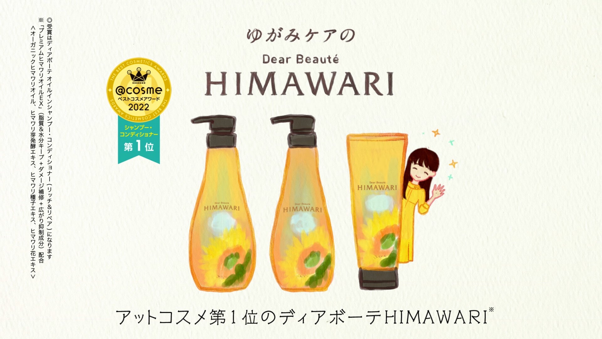 「ディアボーテ HIMAWARI」は、“年齢による髪のうねり、くせ、パサつきの原因となる「髪のゆがみ」を整え、素直な髪に導く”をコンセプトに、シャンプー、コンディショナーなどのインバス商品からアウトバストリートメント商品まで展開しています。