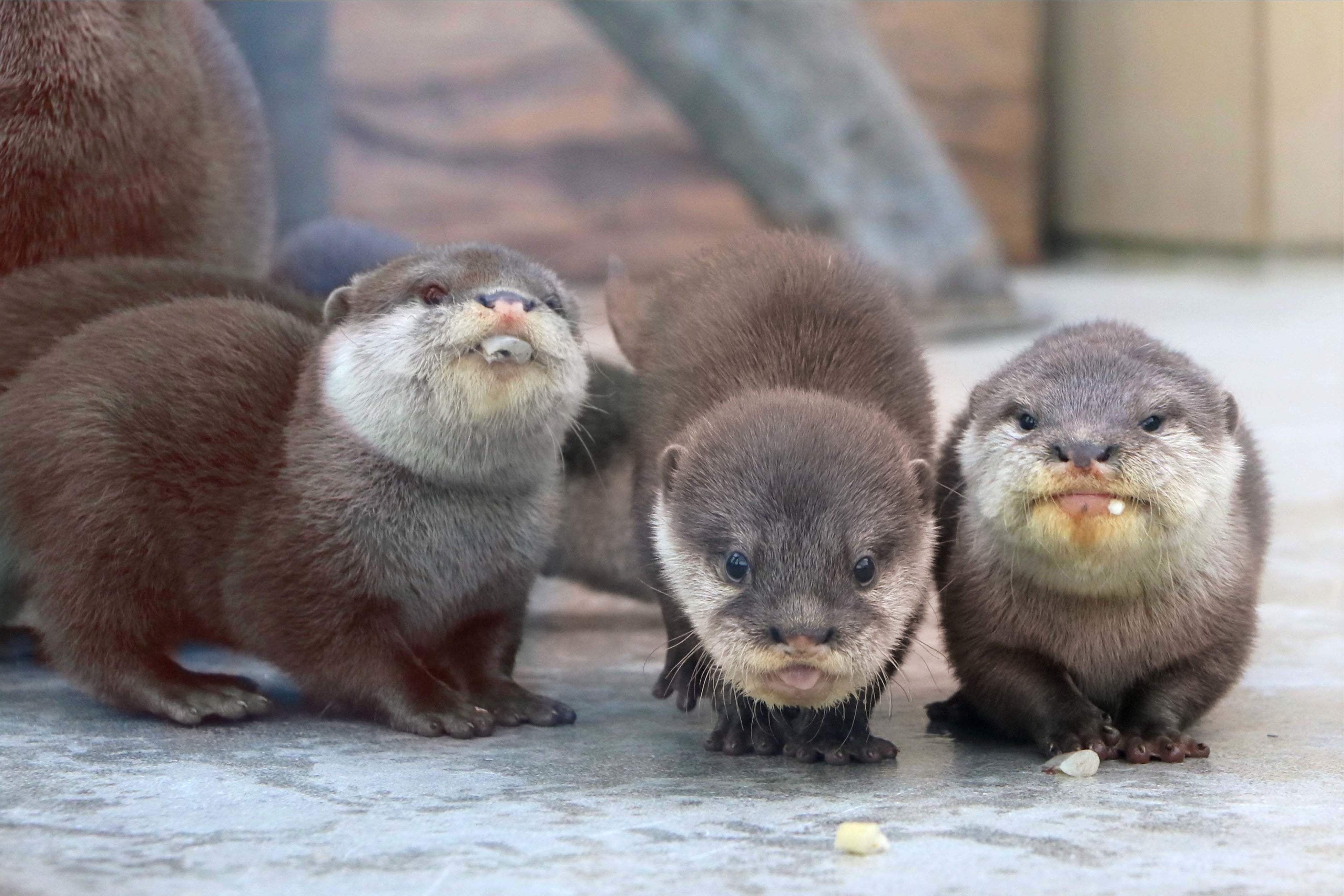 赤ちゃんたちは誕生時わずか70gほどであった体重も、現在は500gを超え、中には700gを超える赤ちゃんもおりすくすくと成長中です。コツメカワウソの赤ちゃんたちが見せてくれるあどけない表情とよちよち歩きには癒されること間違いなしです。