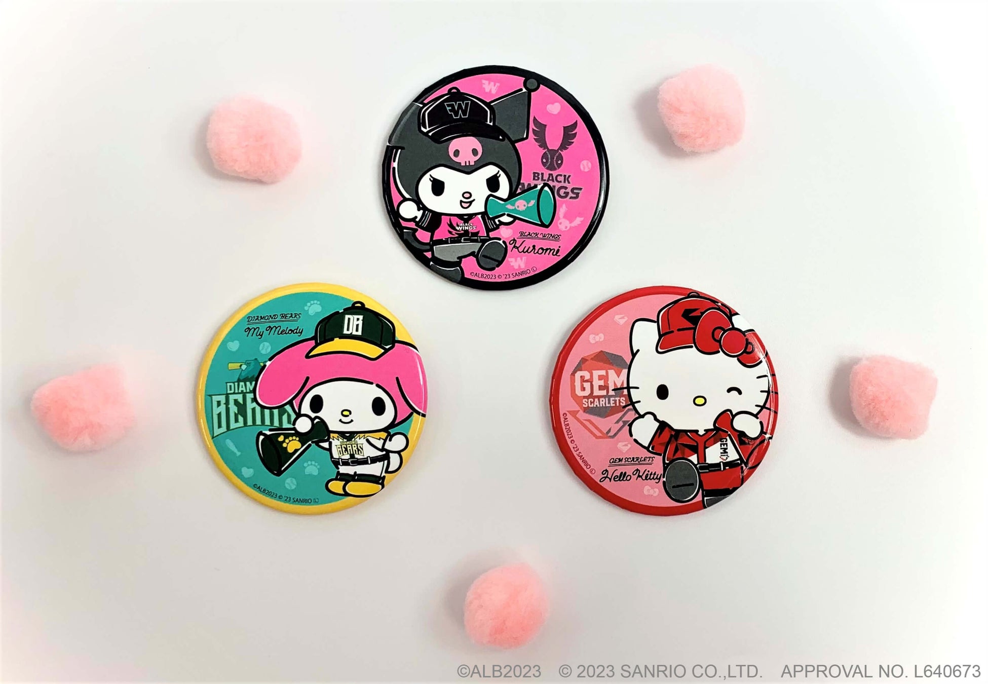 3チーム1組のセットアイテムとして、直径6.5cmの大きめ缶バッチが登場。ウィンクしながら盛り上げるハローキティ、メガホンで応援するクロミ、小さな手でさりげなくガッツポーズするマイメロディ……どれも可愛すぎます!