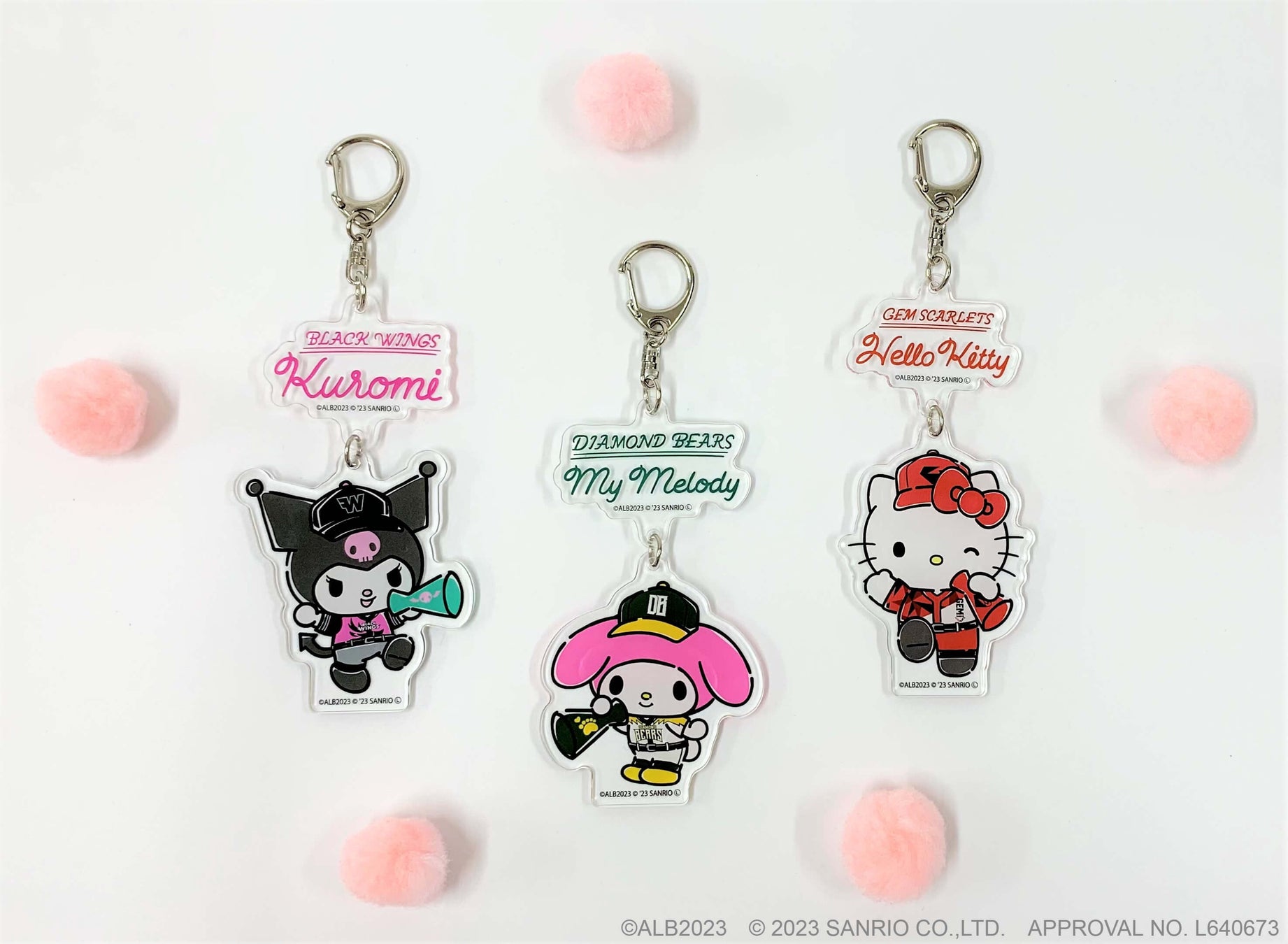サンリオキャラクターズとチーム名のチャームが連なった、約12cmの連結アクリルキーホルダー。眺めるたびに試合前のワクワク感や試合中の胸熱シーンを思い出し、きっとかけがえのない宝物になるはずです!