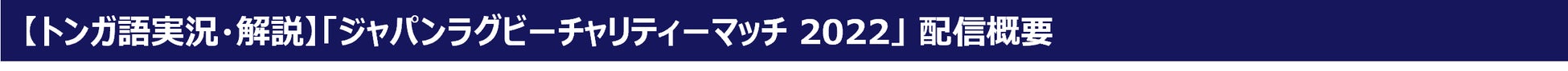「ジャパンラグビーチャリティーマッチ2022 EMERGING BLOSSOMS(エマージング ブロッサムズ) vs. TONGA SAMURAI XV(トンガサムライ フィフティーン)」は、今年1月15日に発生したトンガ王国北部に位置する海底火山フンガトンガ・フンガハアパイの大規模な噴火の影響による被災者救援と、被災地域の復興支援を目的としたチャリティマッチです。今回、公益財団法人日本ラグビーフットボール協会(JRFU)協力の下、日本国内在住のトンガ人の皆さまに母国語で本試合をお楽しみいただけるよう、日本語のほかトンガ語による実況・解説でもお届けする運びとなりました。当試合の意義と支援の輪を広げるべく、トンガ語の実況・解説版は、トンガ王国を含めた日本国外を対象にJ SPORTSの公式YouTubeチャンネルでもLIVE配信をいたします。※3