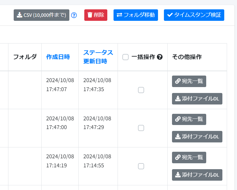 一括ダウンロードは書類一覧、書類詳細画面のどちらからでも利用可能です。