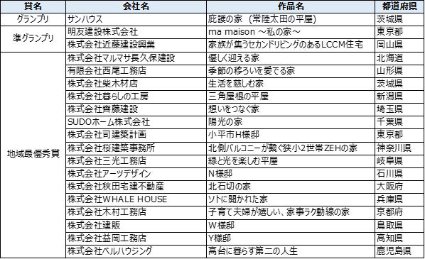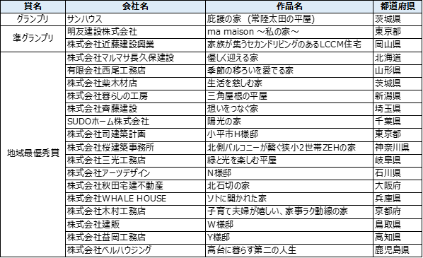 コンテストは新築戸建て住宅を対象とする “新築部門” と、リフォーム住宅を対象とする “リフォーム部門”の2部門で構成され、各部門ともに上位3作品を選出し、公開審査会によりグランプリ作品を決定したほか、地域性も踏まえた優秀な施工物件などを表彰しました。