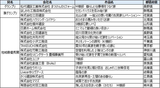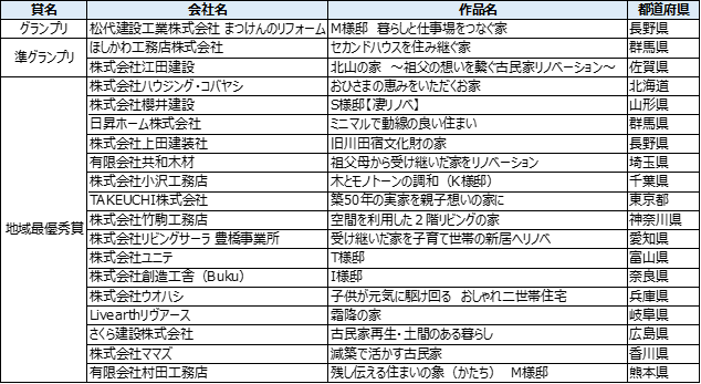新築部門のグランプリにはサンハウスさま(茨城県)施工による「庇護の家(常陸太田の平屋)」が選ばれ、リフォーム部門のグランプリには松代建設工業株式会社さま(長野県)施工による「M様邸 暮らしと仕事場をつなぐ家」が選ばれました。