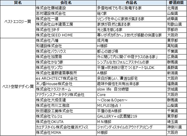 新築部門は「庇護の家」リフォーム部門は「M様邸 暮らしと仕事場をつなぐ家」がグランプリを受賞