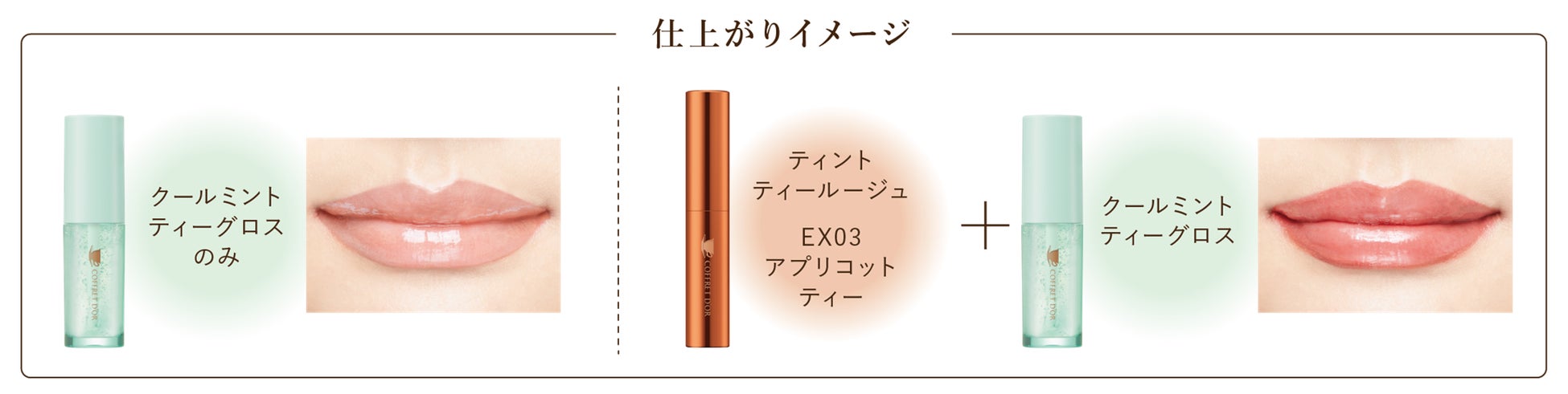 「コフレドール ティントティールージュ」はティーベージュのニュアンスを含んだ馴染みの良い5色の“ティーカラー”から選べ、色&うるおいを抱え込んで密着させ、ヌーディーな唇を演出します。「コフレドール クールミントティーグロス」はミントティーの香りとメントールの清涼感が爽やかで、みずみずしいツヤのある口もとをつくります。また、「コフレドール テ・ドルチェシャドウ」はジューシーな果実のような色ときらめきが、夏の日差しに映える鮮やかな目もとを演出します。