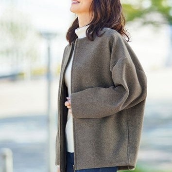 環境に配慮した「リサイクルポリエステル」を一部使用して、ウール調に仕上げたソフトな素材のコート。