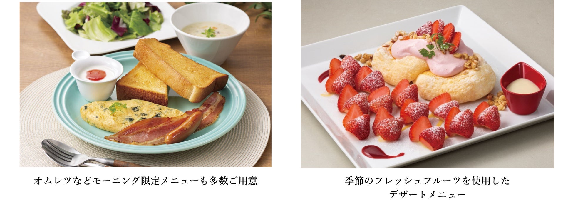 「高原リゾートの珈琲店」をイメージした、癒しのカフェ空間づくり 店内は木の香りただようゆとりの癒し空間で、居心地のよい店内づくりにもこだわっています。 人気No.1のふわっとろパンケーキや、フード・ドリンクメニューの充実 朝限定お得なモーニングサービスから、パスタやロコモコなどのカフェGOHAN、軽食・デザートまで多彩なメニューや、深いコクとすっきりとした後味が特徴の「珈琲」などをご用意しております。 豊富な雑誌や絵本もご用意。お客さまニーズに対応した寛ぎ時間をご提供 朝の爽やかなひと時からランチタイムの女子会・ママ会、穏やかな午後のカフェタイム、ディナータイムのお食事など、お一人様からファミリーまで様々なシーンでご利用いただけます。 |