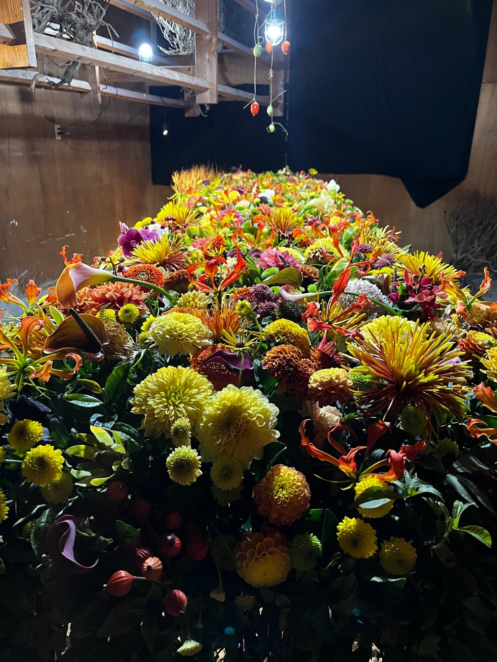 フラワーアーティスト松本光氏による約8,000本もの生花と抜根されたお茶の木を用いた約15mの巨大なテーブルを模した、見るものを圧倒するアート作品。
