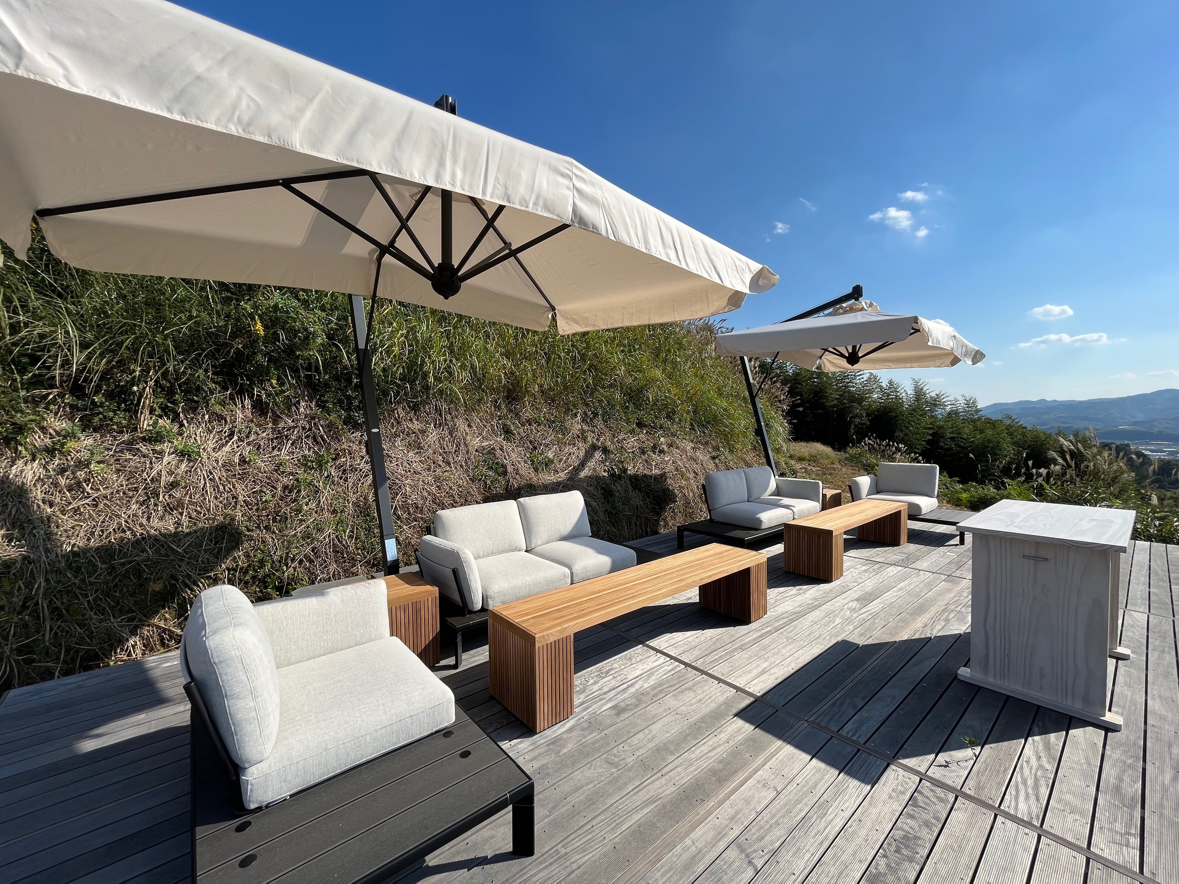 八女中央大茶園の絶景を専用テラスから眺める特等席での朝活をお愉しみいただけます。¥