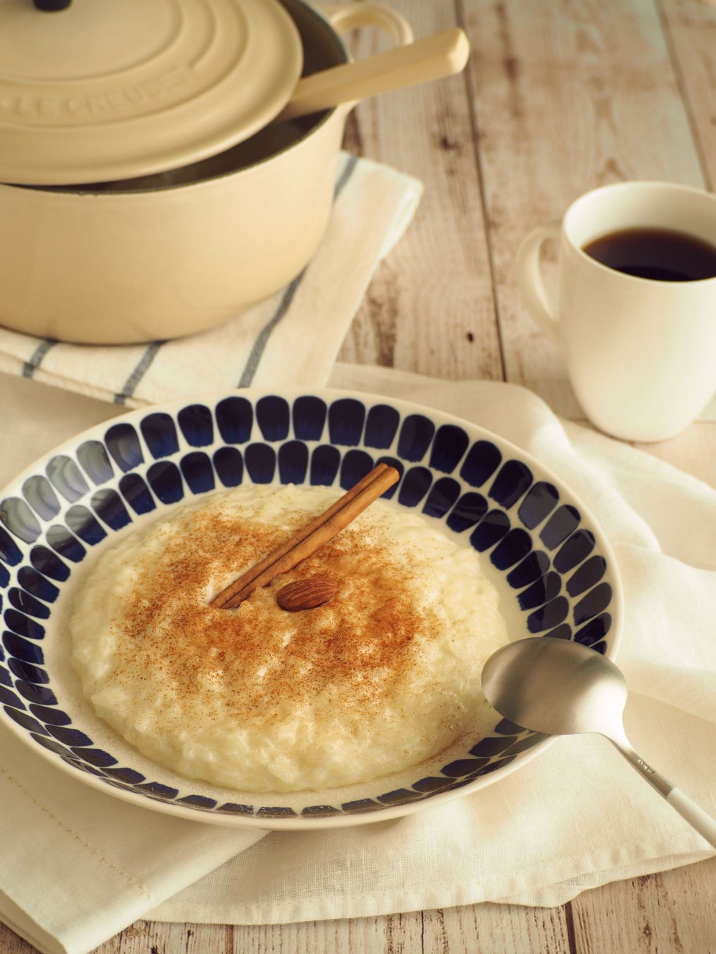 クリスマスの朝に食卓を彩る、北欧の伝統料理。ミルクで炊き上げたお米のとろりとした食感に、甘いシナモンシュガーをかければ、まるで小さな贈り物のような一皿です。
