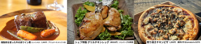 <火ュッゲナイト おすすめフード>フランクフルト 450円(うでっこき)、スノーマシュマロ 400円(10+Flowers)