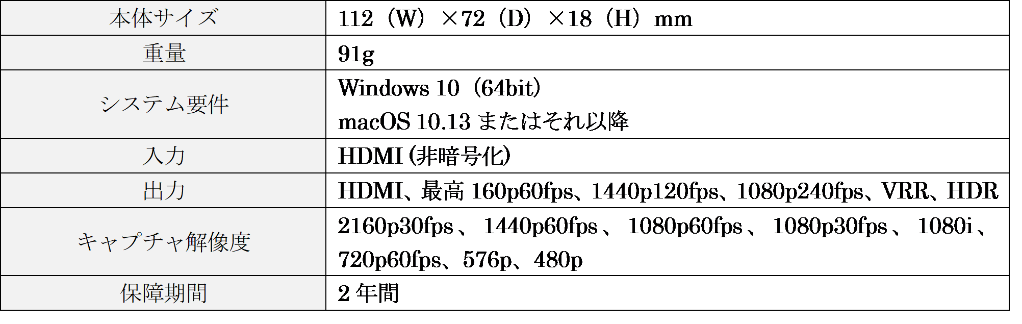 ・1080p60fps、4K30 HDR10の高解像度キャプチャ