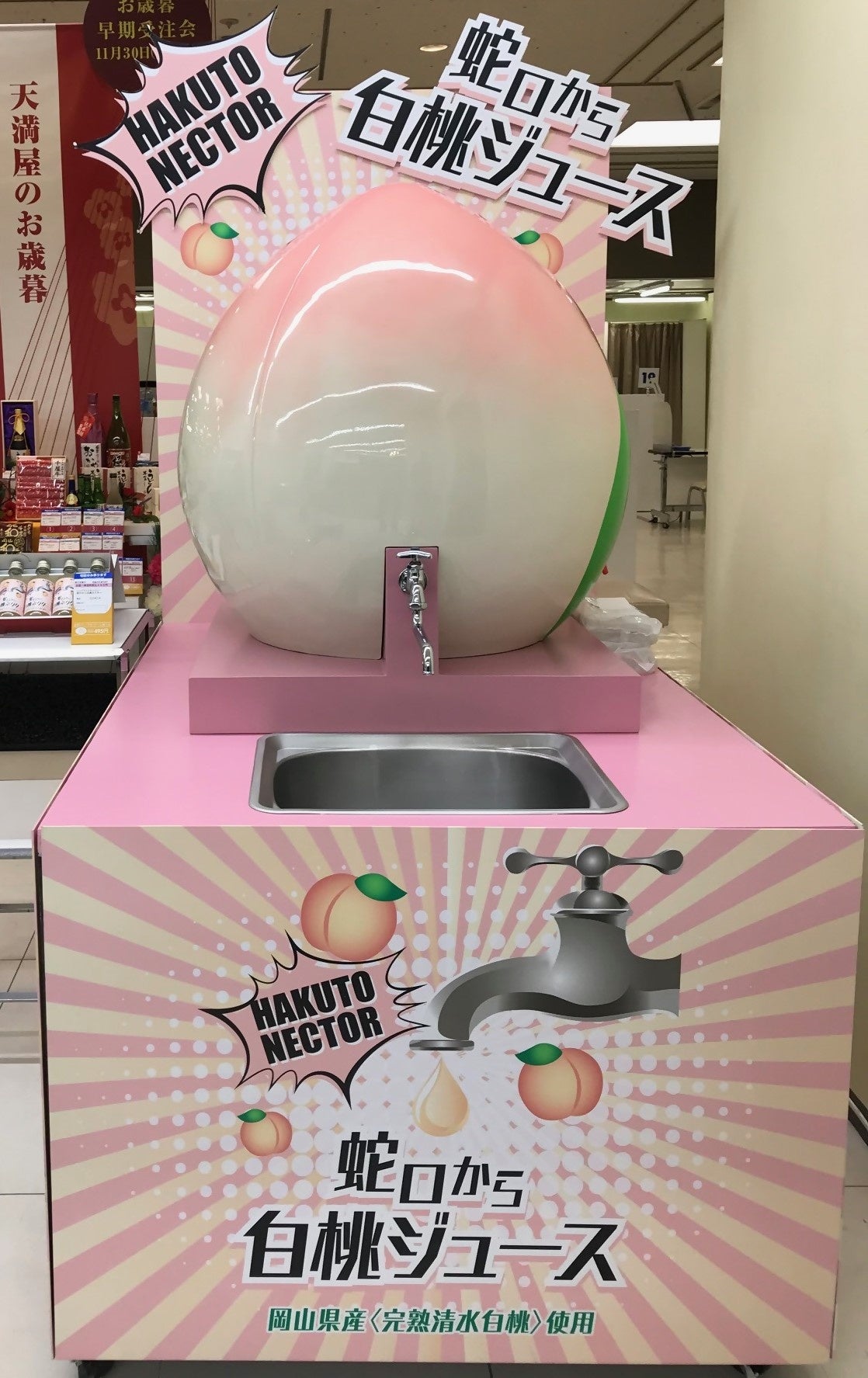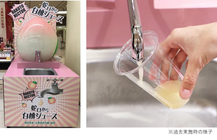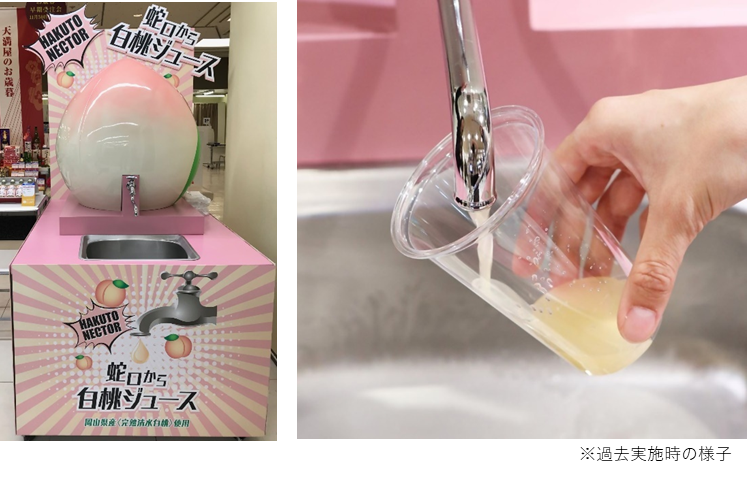 東京・新橋のアンテナショップに8月9日(金)より登場!岡山県産の白桃を使用した「蛇口から白桃ジュース!スタンド」