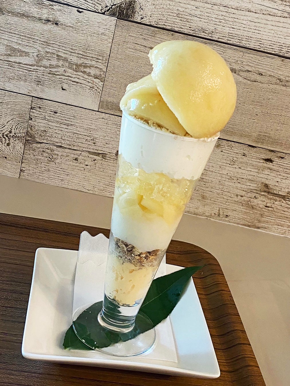 岡山白桃パフェ~白桃丸ごと贅沢一個使い~(2,400円)、