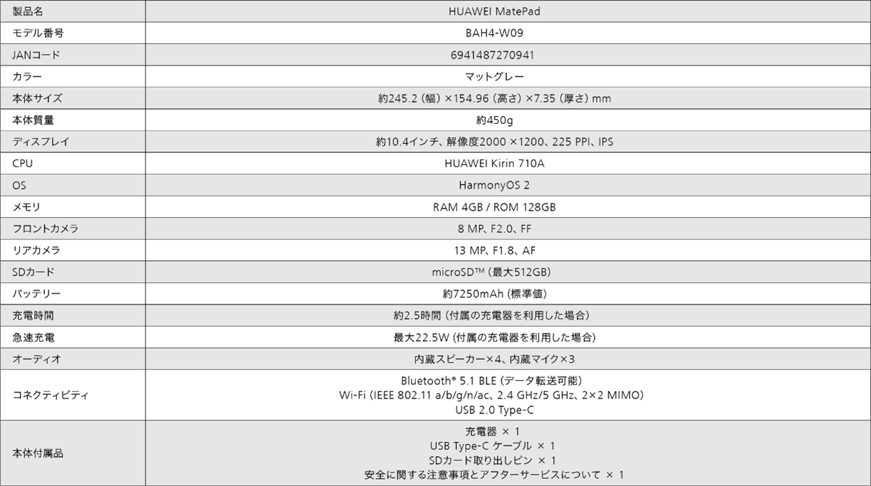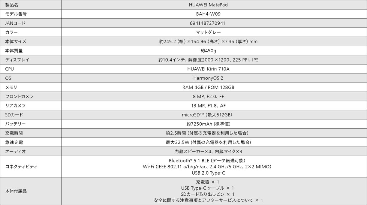 『HUAWEI MatePad』 の主な仕様