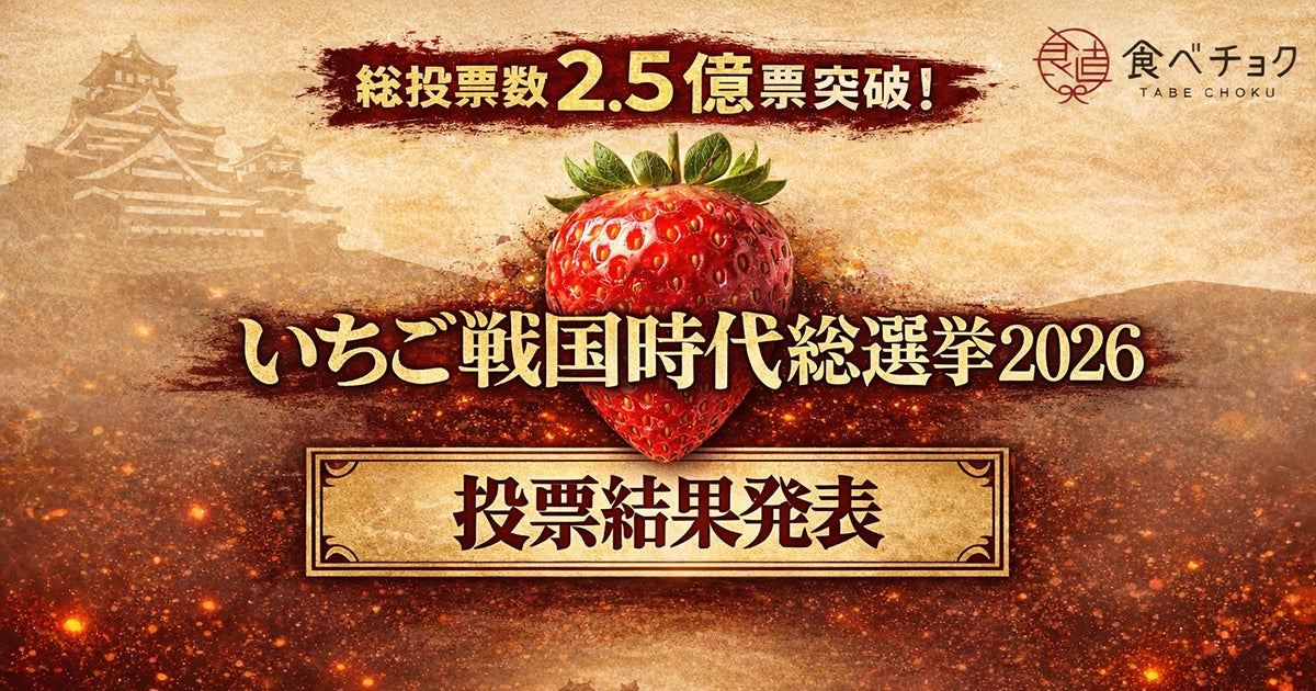 認知度・利用率など9つのNo.1(※1)を持つ日本最大の産直通販サイト(※2)「食べチョク」を運営する株式会社ビビッドガーデン(本社:東京都港区、代表取締役社長:秋元里奈)は、全国38都道府県・110品種のいちごの中から頂点を決めるエンターテインメント型投票イベント「天下分け目のいちご戦国時代2026」を開催し、その結果を発表しました。