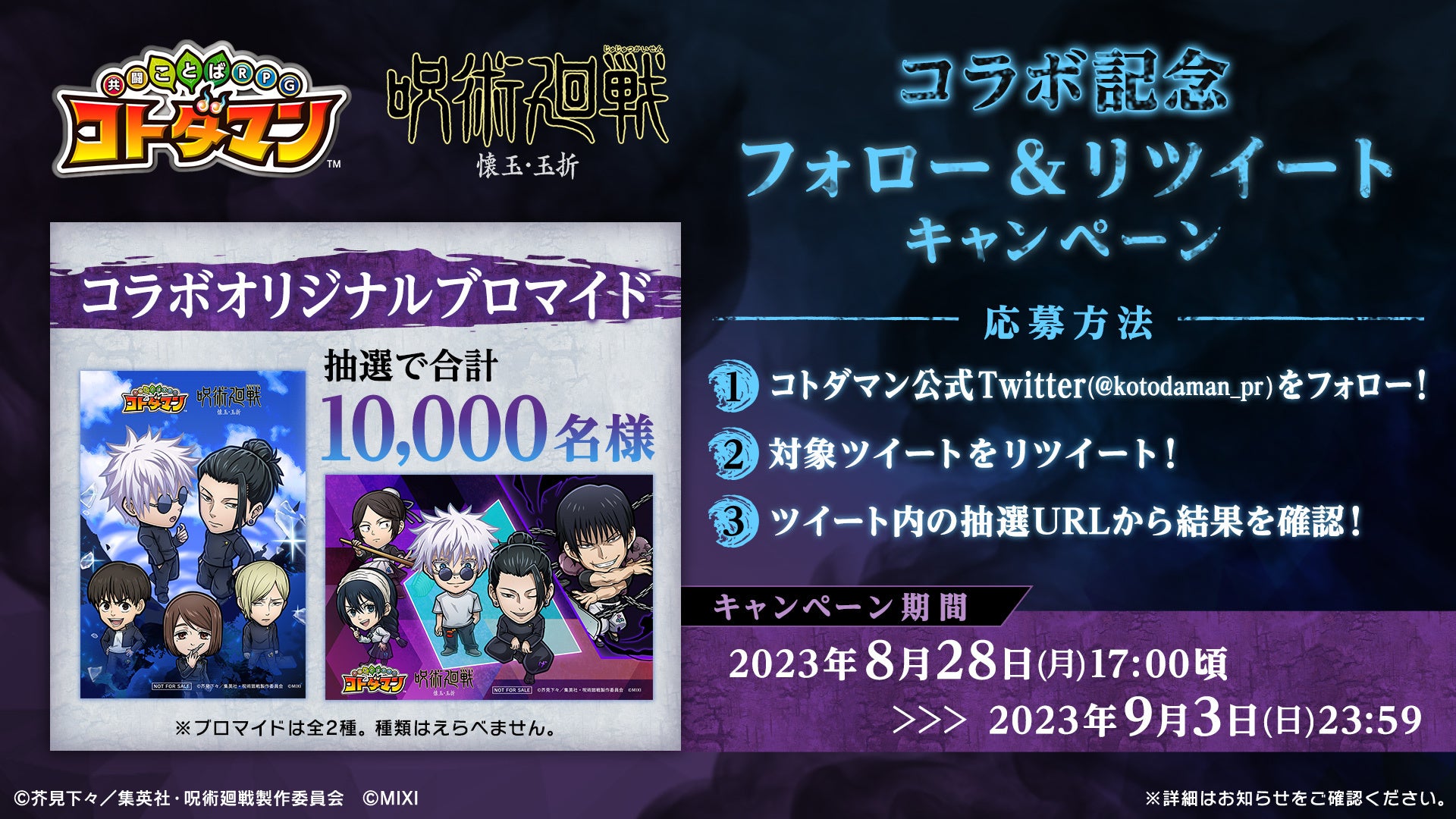※コトダマン公式X(旧Twitter)をフォローし、「#じゅじゅだまん」のハッシュタグをつけてツイートした方が対象