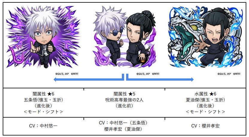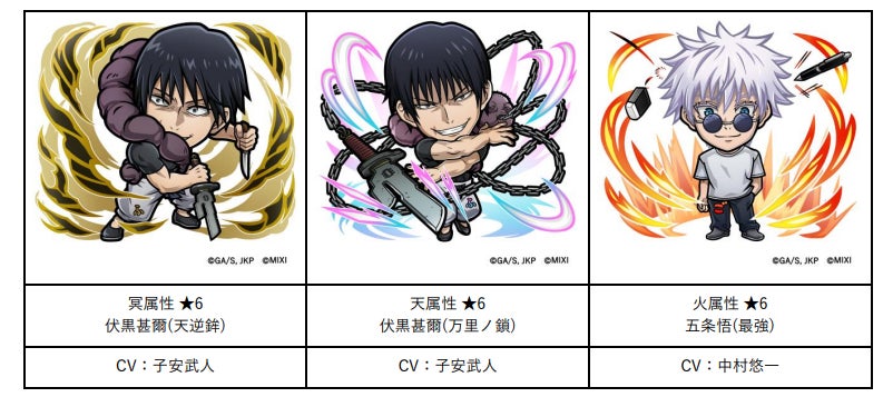 TVアニメ『呪術廻戦』懐玉・玉折に登場中の「五条悟(懐玉・玉折)」「夏油傑(懐玉・玉折)」がコラボ召喚に、「伏黒甚爾(天逆鉾)」「伏黒甚爾(万里ノ鎖)」が降臨キャラとして登場!
