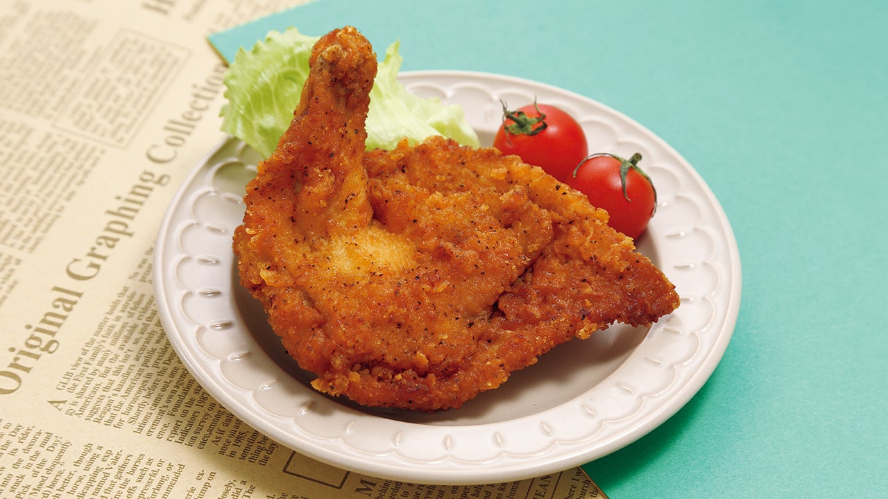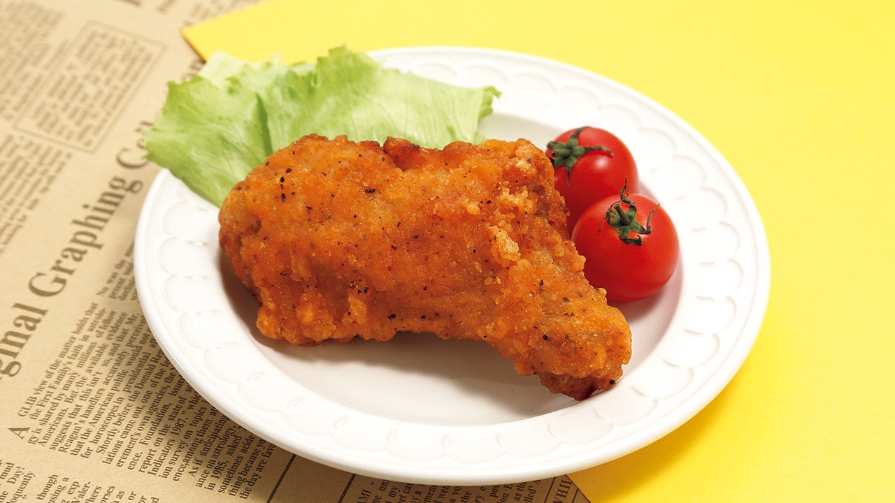 むね肉にスパイシーな香辛料を混ぜ合わせた衣をつけました。しっとり柔らかく仕上げたむね肉は、さっぱりしていて食べやすい仕様です。手で持って食べやすいように手羽元部分を残しました。