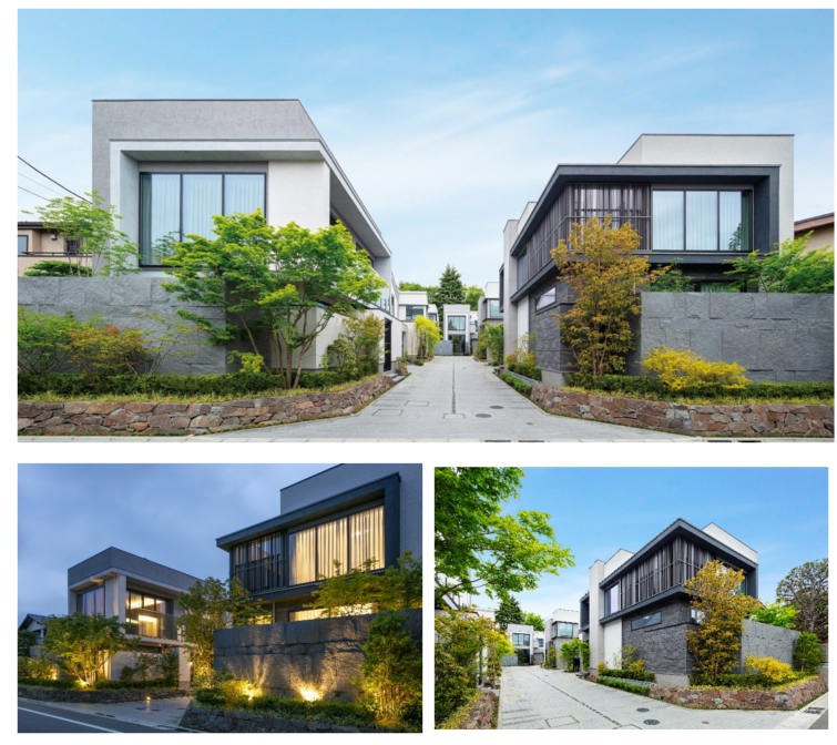 住宅の狭小化により旧来からの成城らしさが失われつつある成城において、もう一度それを取り戻そうとしている点が評価された。狭小な住宅に見えないように6邸が一体に見えるように気を配ったり、電柱を地中化した御影石貼の路地など、上質な景観作りに丁寧に取り組んでいる。一つひとつは地味な行為であるが、その努力の積み重ねで成城らしい街並みが取り戻されていくことが期待される。成城憲章の理念を外構デザインに取り入れ、趣のある外構や緑豊かな空間を作ろうとしている点も良い。