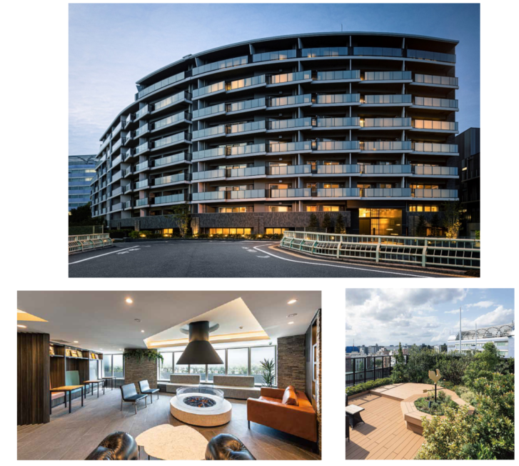 低層住宅が立ち並ぶ住宅地が周辺に連担するエリアに立地する大規模集合住宅として、近隣への配慮に優れた作品である。大規模な建造物だけに生じる長い接道面には、四季が感じられるたっぷりとした緑量が施されており、小規模な住宅や商店が並ぶエリアの価値そのものを引き上げる効果が十分に感じられる。周辺に対してスケールが大きな建物本体のデザインも、マリオンレスにより水平性が印象的な外観で、モノトーンの落ち着いた色彩とともに、その軽やかさが規模による圧迫感を大きく軽減している。ある程度パターン化することで事業展開していたこれまでの住宅供給を、新型コロナ禍によるライフスタイルの変化に合わせて「変える」という選択をしたチャレンジは、今後の集合住宅の新たな可能性を示しているように思う。