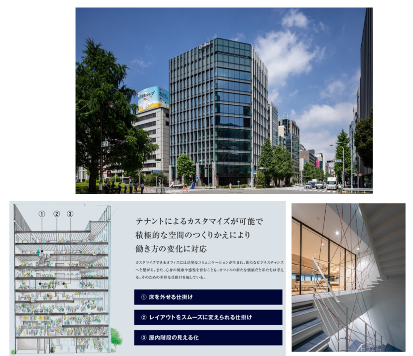 働き方が多様化する中で、賃貸ビルにもユーザーのニーズの多様化に対応した様々なアイデアが求められる時代となった。トレンドの一つとなっているのは、フロアー間で薄くなりがちなコミュニケーションを生み出すために一部の床を抜けるようにして視覚的なコミュニケーションを生み出したり、そこに階段を設けて物理的なコミュニケーションを生み出したりするような仕組みをあらかじめ用意しておく方法である。本計画は、このアイデアをさらに進めて、CLT(直行方向に木材を積層接着した集成板)を利用してより積極的な「抜ける床」を提案している点が評価された。