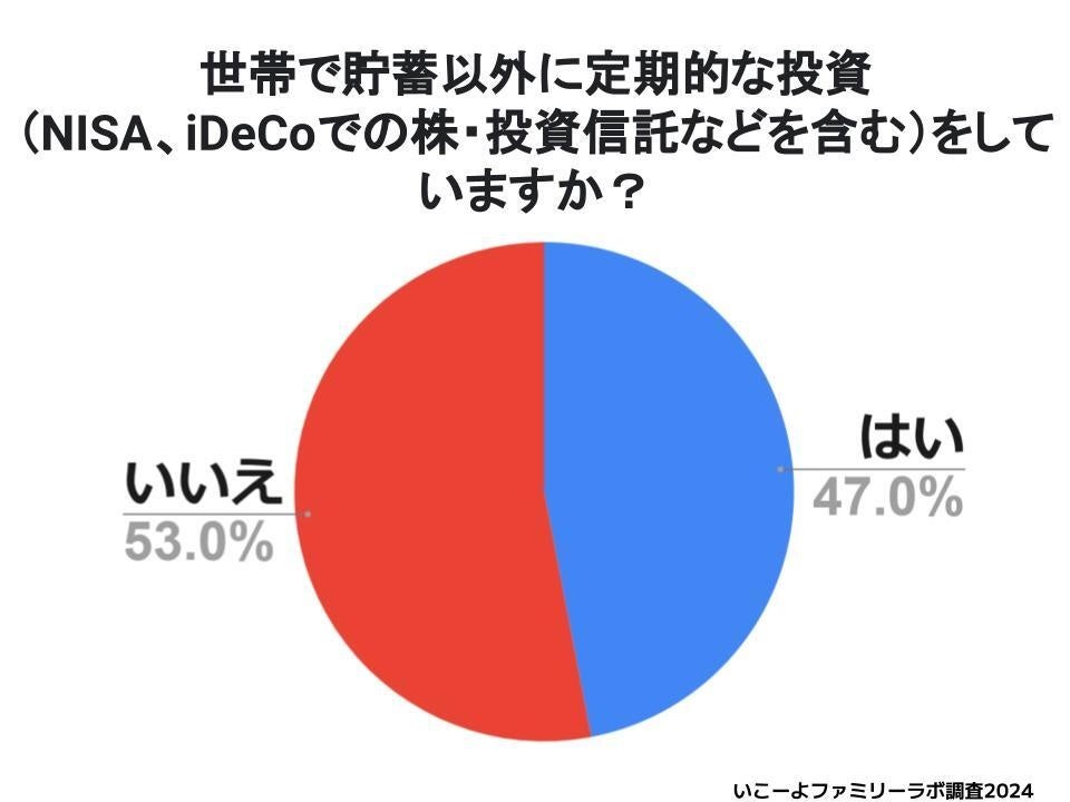 【いこーよファミリーラボ調査】子育て世帯の半数が投資を実施! 投資スタイルはバランス型! NISA口座開設をしながらも投資に踏みきれていない世帯も多い!