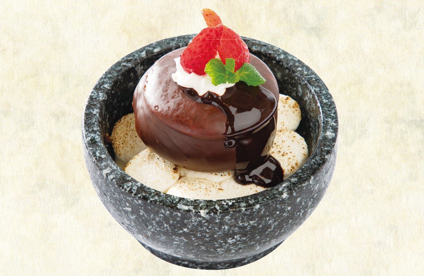 くちどけの良いたっぷりクリームをチョコレートで丁寧に包み込んだ「生チョコパイ」を焼きマシュマロアイスにのせた、ほんのり温かい幸せスイーツです。