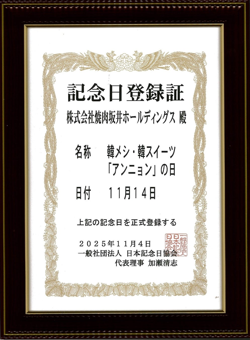 記念日名称:韓メシ・韓スイーツ 「アンニョン」の日 記念日日付:11月14日 正式登録日:2025年11月4日(火)