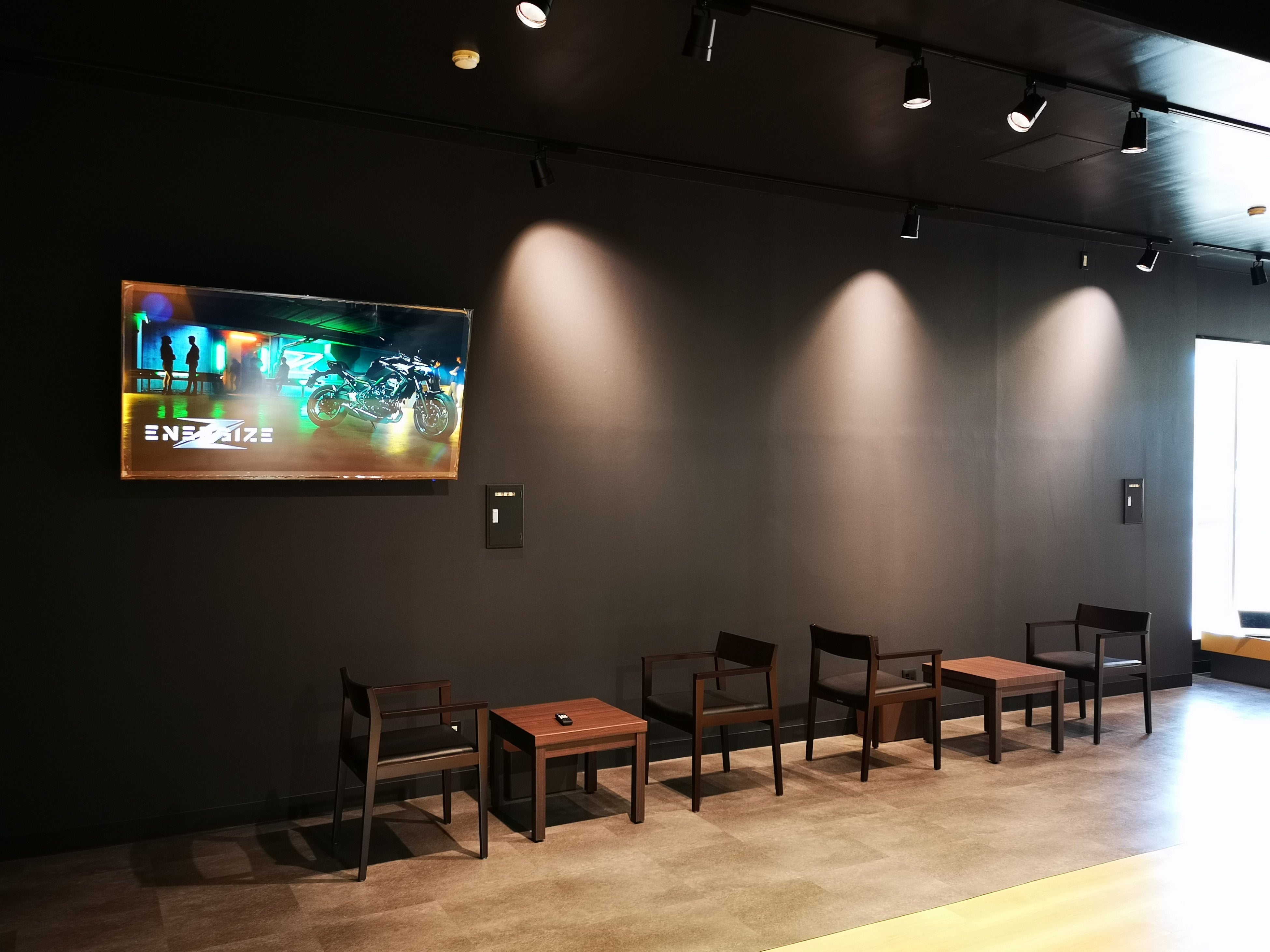 待合スペースでは、カワサキプラザオリジナル「Ninjaブレンド」を楽しんでいただいたり、愛車の作業状況をご覧いただきながらゆっくりとお過ごしいただけます。