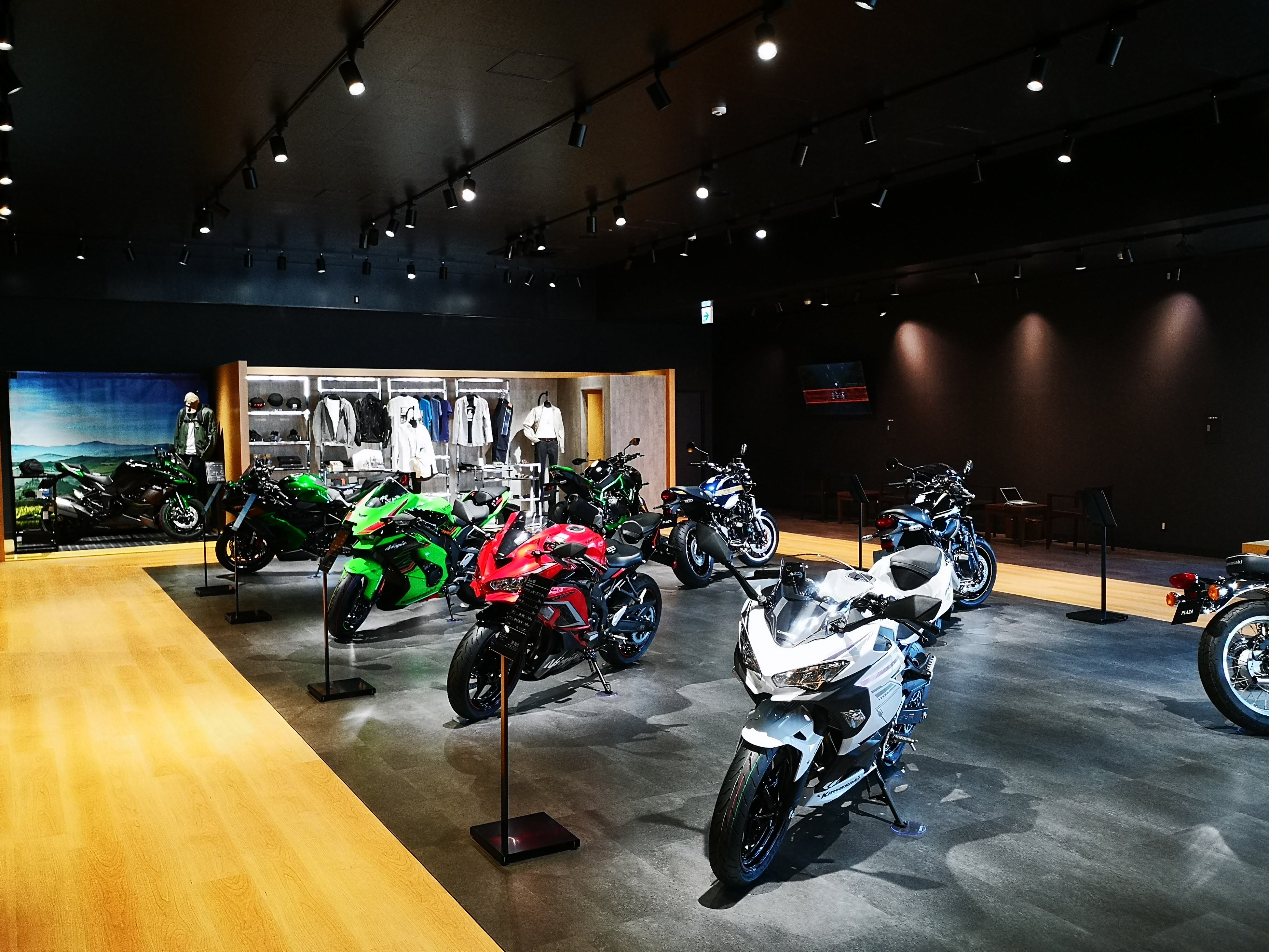 また、カワサキモーターサイクルを愛するすべてのライダーにとって、最高のパートナーになるためのメンテナンスサポートやプラザアパレルをコーディネートにてご提案し、快適で安全なモーターサイクルライフをご提供いたします。