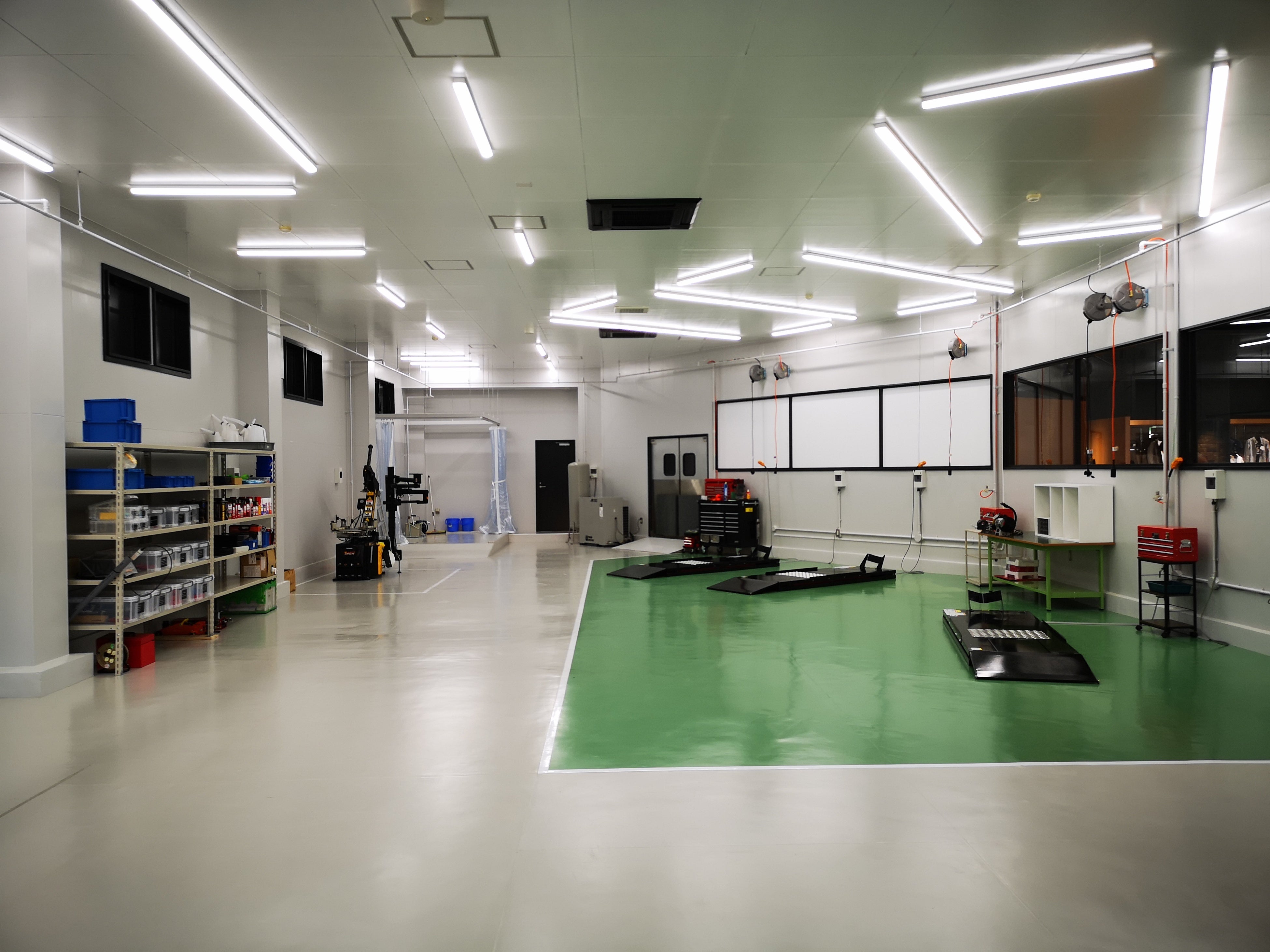 テクニカルセンターでは、お客様に安心で、安全なモーターサイクルライフを過ごしていただくため、明るく作業のしやすいスペースを確保しています。