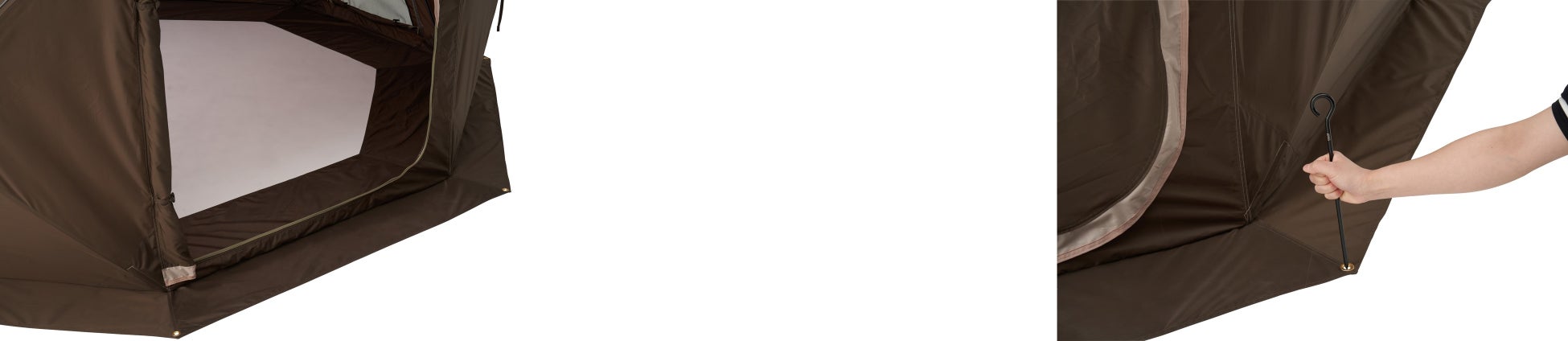 パネルに内蔵されたフレームを交差させることで耐風性に優れた構造ながら、丸みのあるフォルムで居住性もUPし、広々とした空間を実現。生地とフレームが一体になっているので、パーツが少なく設営も撤収も簡単。