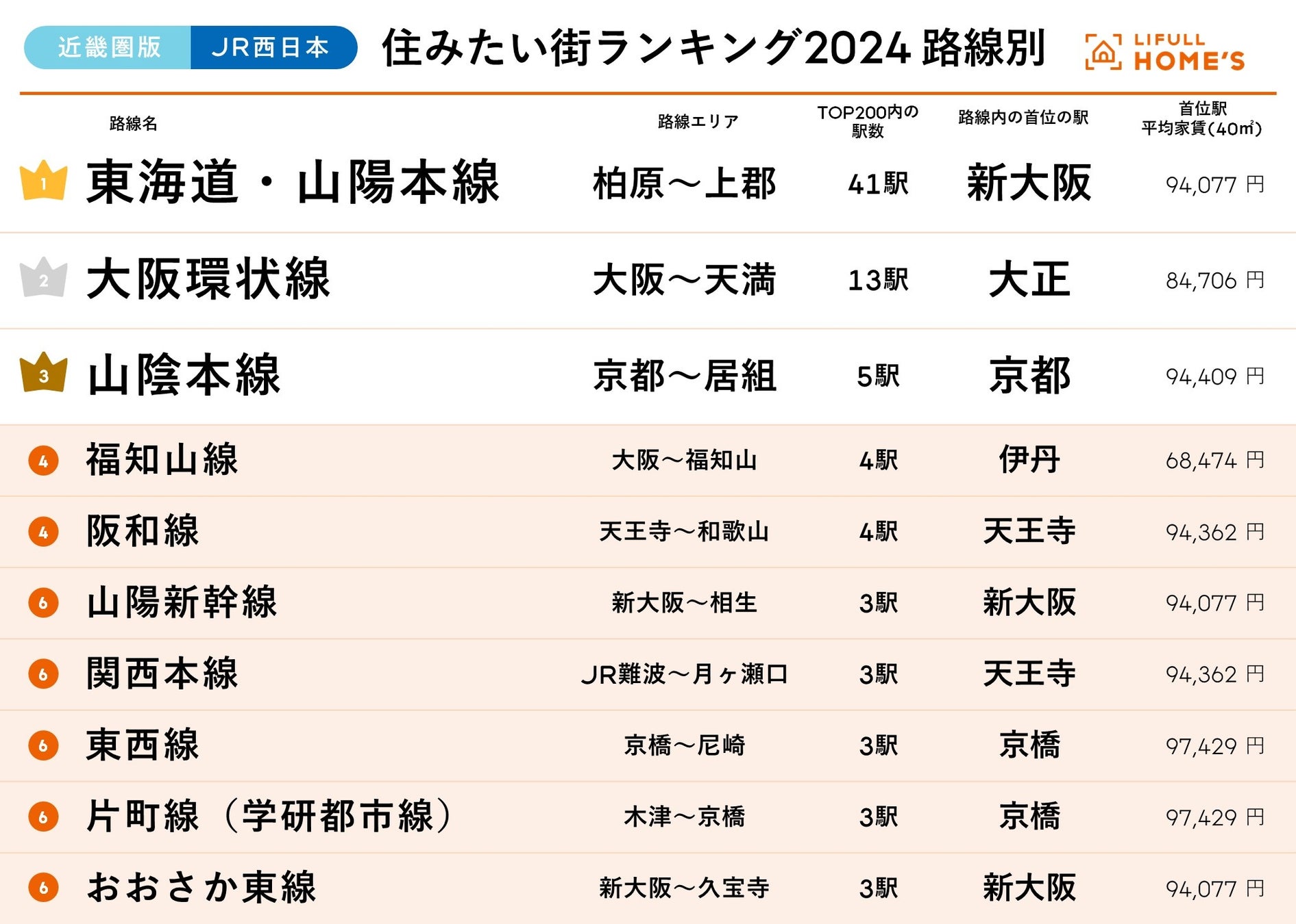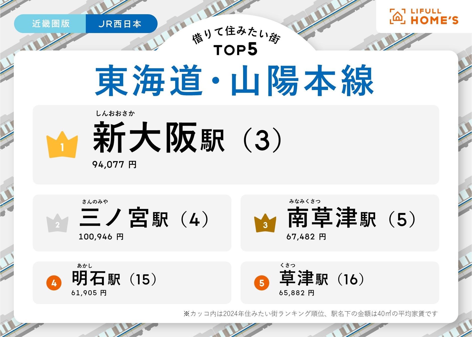 JR西日本で「住みたい街が多い路線」は「東海道・山陽本線」2024年LIFULL HOME'Sみんなが探した!借りて住みたい街ランキング