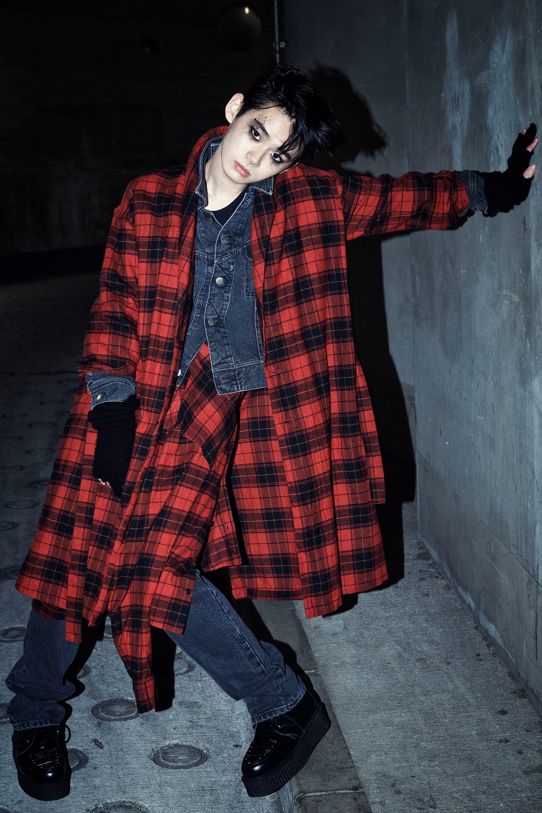 (左) TARTAN CHECK LONG JACKET 83,600 yen TARTAN CHECK BLOUSE 59,400 yen