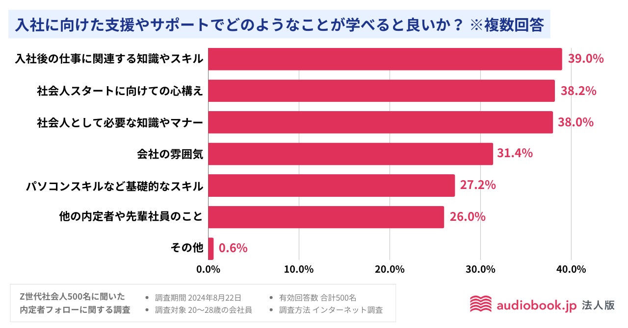 利用者数1万人突破の法人向けのオーディオブック聴き放題プラン「audiobook.jp 法人版」を提供する株式会社オトバンク(本社:東京都文京区、代表取締役社長:久保田裕也、以下「オトバンク」)は、10月の内定式シーズンを前にZ世代社会人500名を対象に「内定者フォローに関する調査」を実施しました。