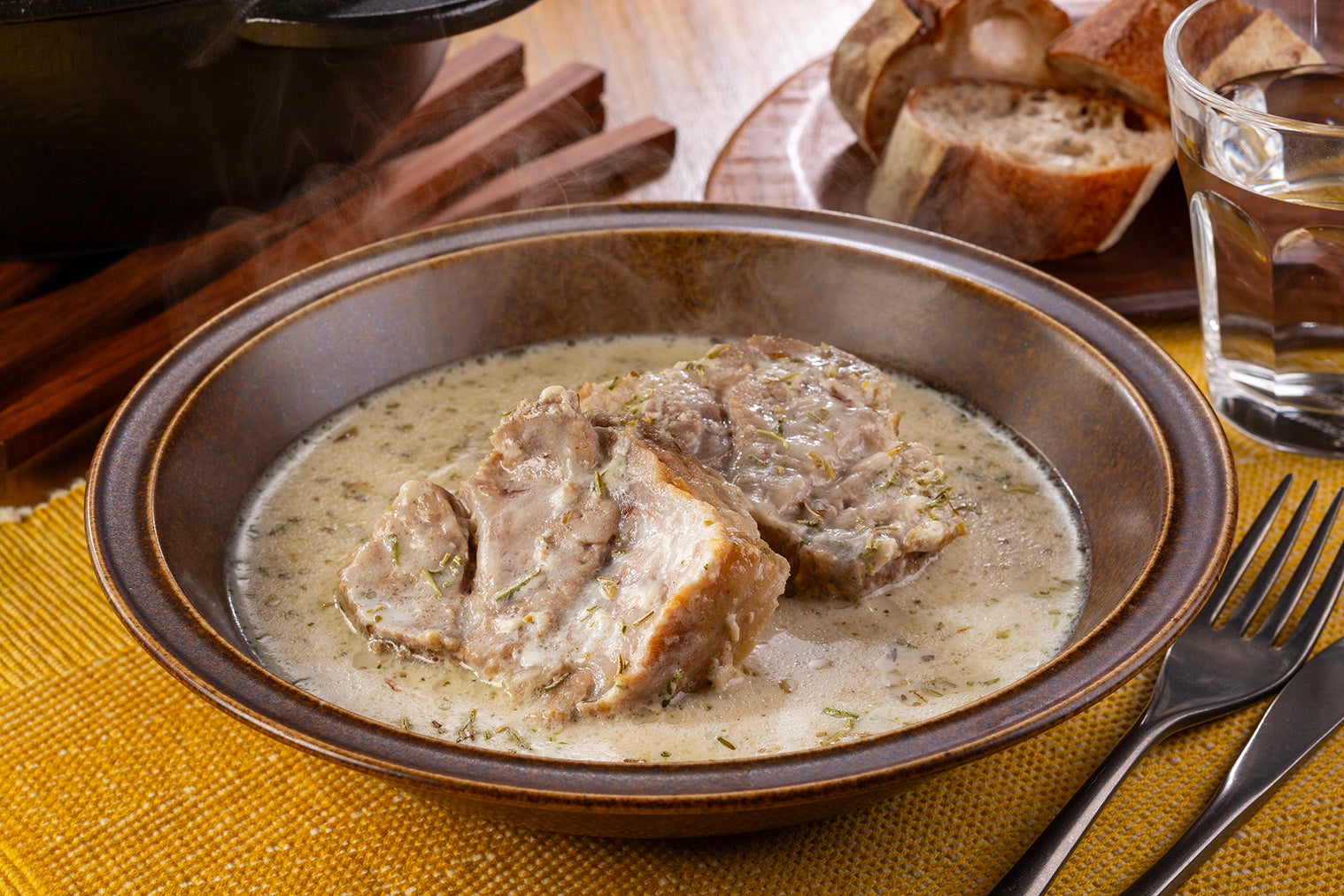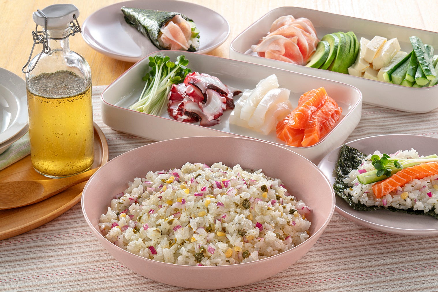 左から、豚肉のミルク煮 ローズマリー風味、タラゴンビネガーを使ったすし飯