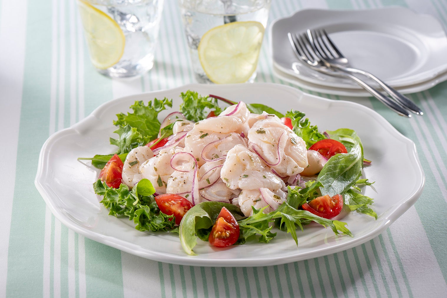 左から、ほたて貝柱のマリネ タラゴン風味、あじの干物のオリーブ油焼き ミックスハーブ風味