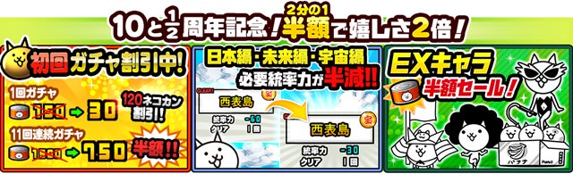 「にゃんこ大戦争」10と1/2周年記念イベント第1弾開催のお知らせ