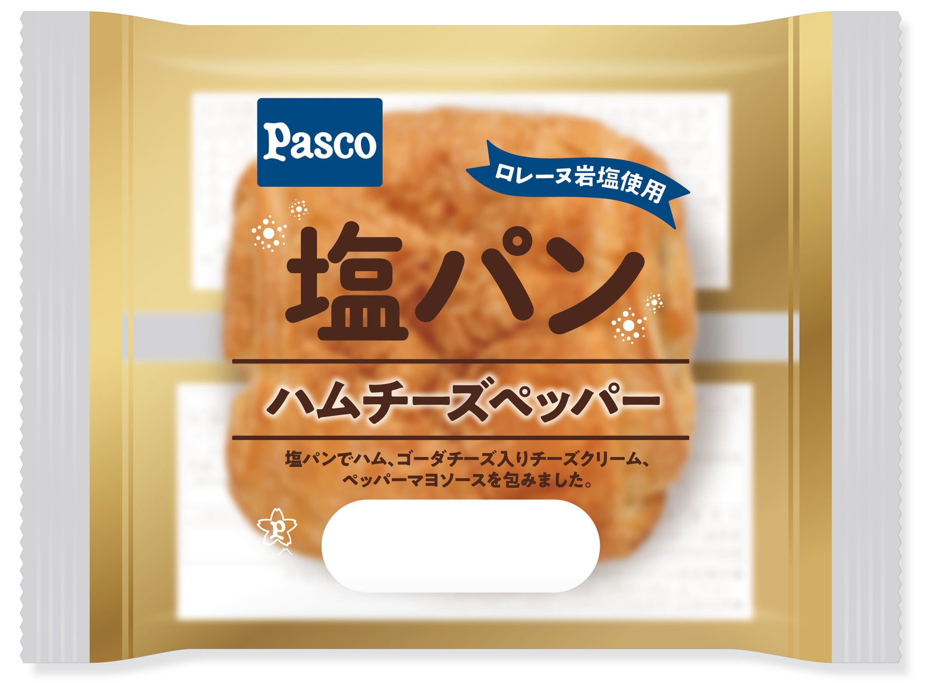 塩パン生地でハムとゴーダチーズ入りチーズクリーム、ペッパーマヨソースを包んで焼き上げました。